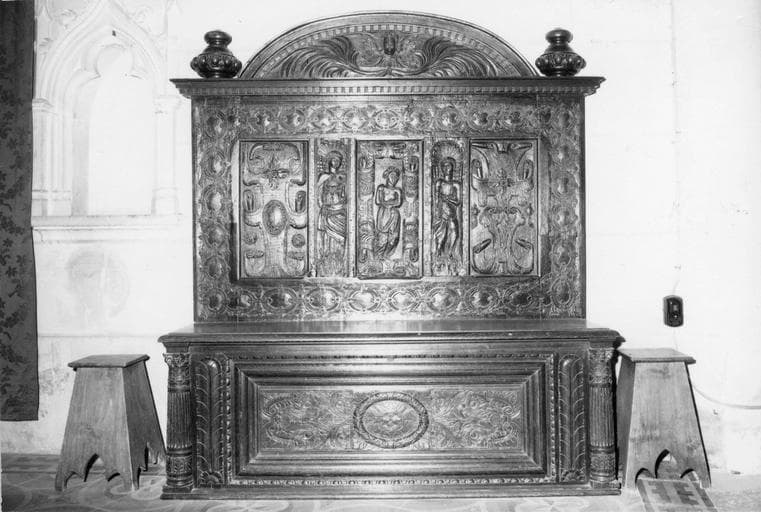 Panneaux encastrés dans le dosseret du banc d'oeuvre.