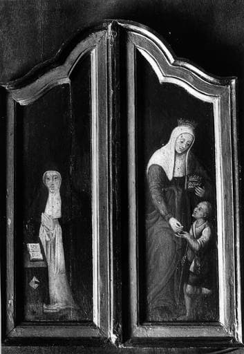 POP | Plateforme ouverte du patrimoinetableau : donatrice agenouillée et sainte Elisabeth de Hongrie faisant l'aumône