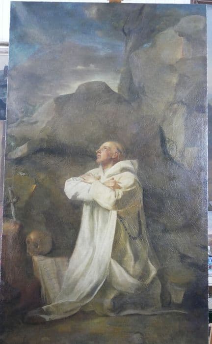 tableau : Saint Bruno en oraison devant une grotte