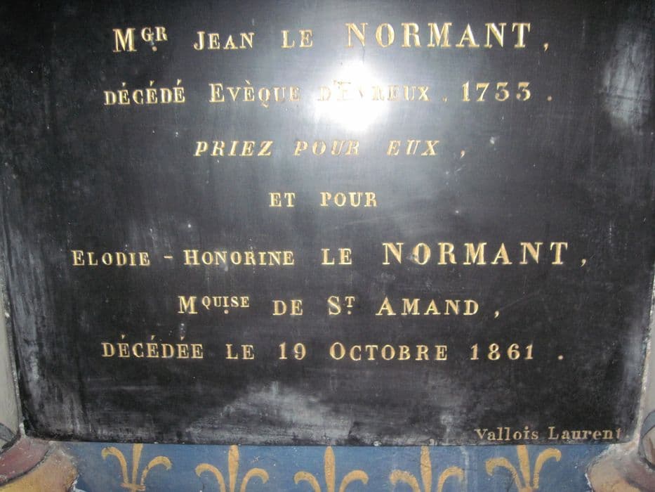 inscription commémorant la restauration de la chapelle de la famille le Normant