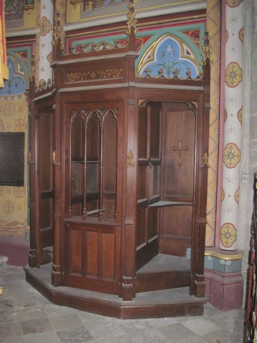 Confessionnal néogothique du type des aménagements Dupanloup.Bois partiellement doré.