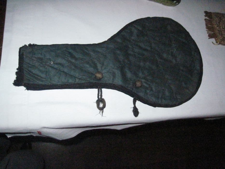 Etui de crosse en fil de coton matelassé vert foncé. Ganse noir.