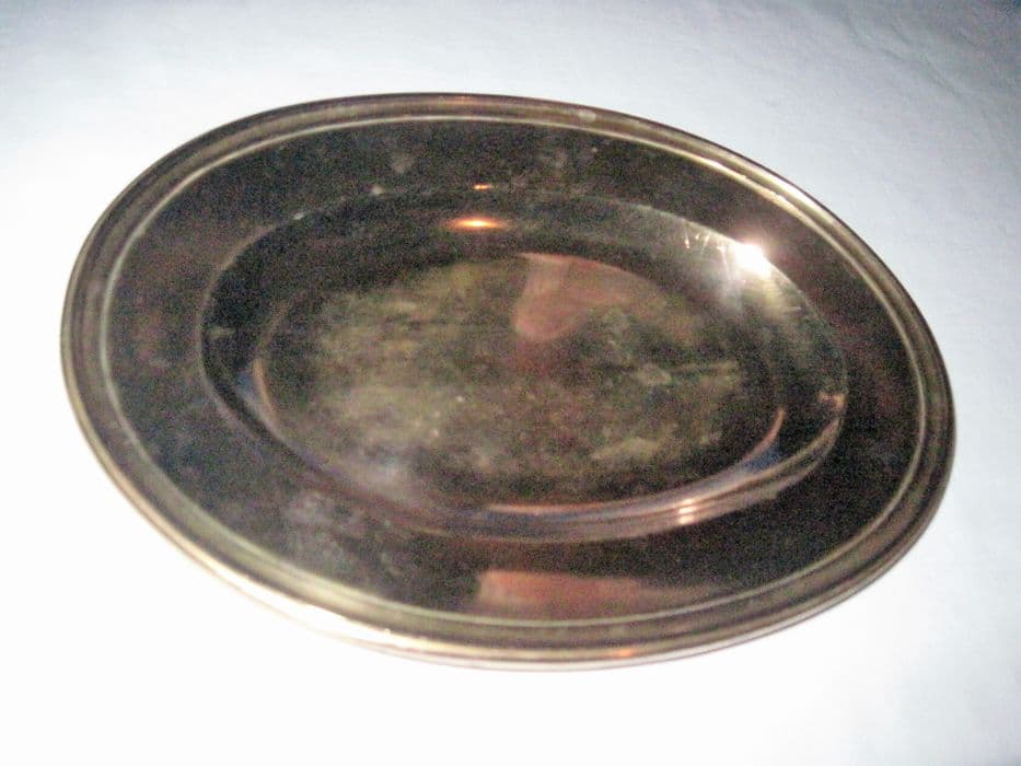 Aiguière (0.33) et bassin (0.34) dans leur boîte. Bassin ovale peu profond. Aiguière sans couvercle, à anse à enroulement médian et entrelac, terminée par une feuille ; panse à étranglement sous l'épaule. Conservé dans sa boite cartonnée.