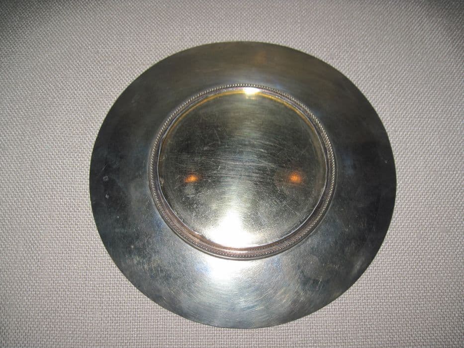 Patène avec un simple décor de rang de perles sur le pourtour de la cuvette au revers.
