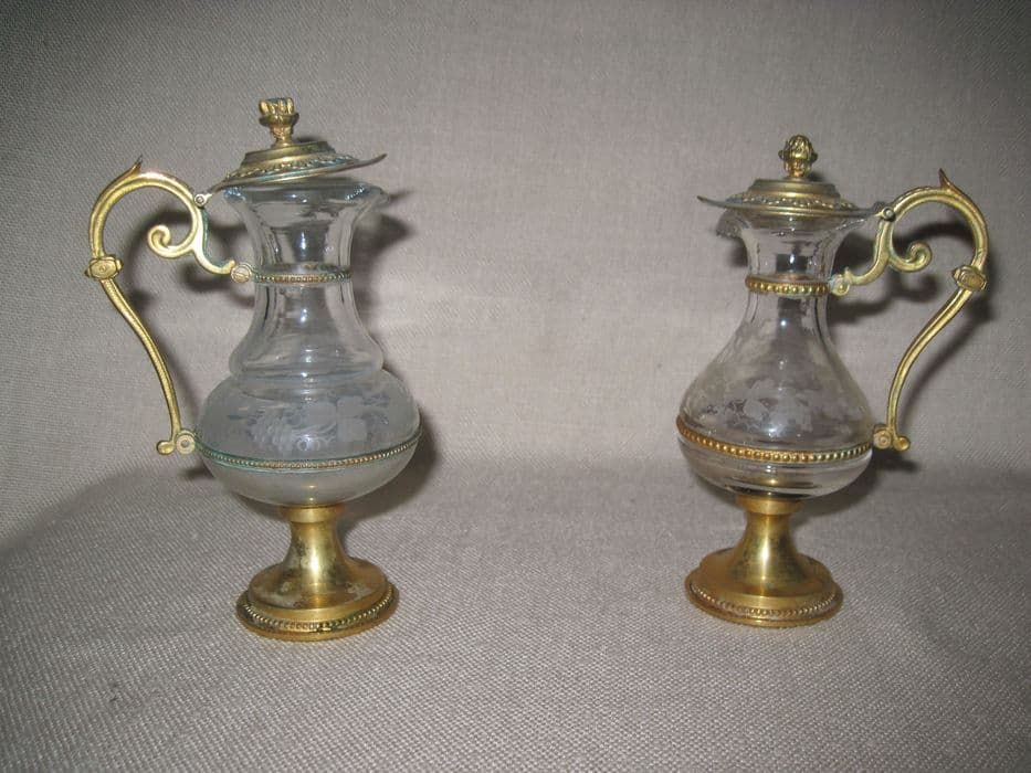 laiton : doré ; verre : gravé ; émail