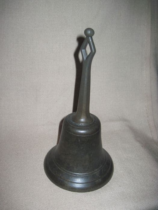 Bronze (?). Clochette dont l'extrémité de la poignée est ajourée en losange et s'achève par une petite boule.