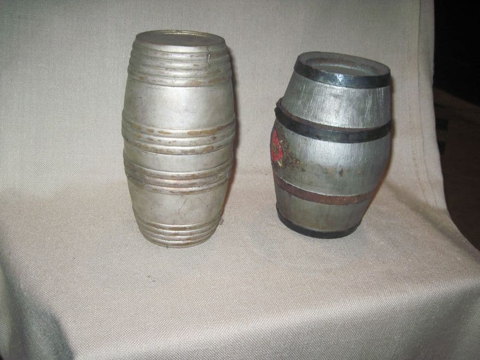 Deux barils de sacre d'un évêque d'Orléans. L'un des deux porte sur la panse deux écussons en papier rapportés qui sont les armes de l'évêque concerné, à identifier.
