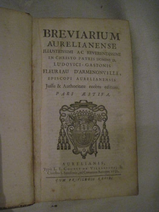 livre liturgique : Brevarium aurelianense illustrissimi ac revendissimi in christo patris domini d. Ludovici-Gastonis Fleuriau d'Armenonville, episcopi aurelianensis , jussu & authoritate recens editum. Pars aestiva.