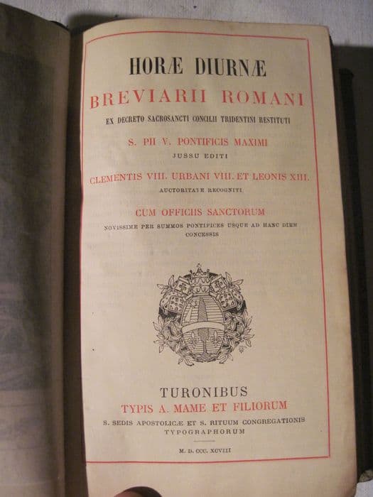 livre liturgique : Horae diurnae breviarii romani ex decreto ss. Concilii tridentini restituti. S. PII V. Pontificis Maximi jussi editi...