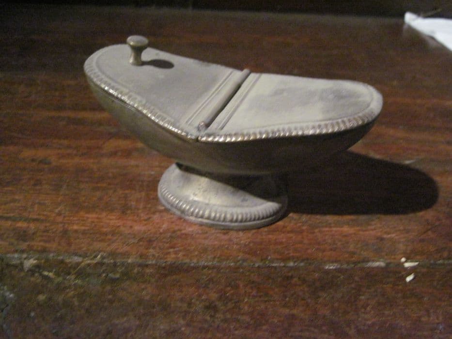 Navette à encens à motif de godrons sur le pourtour du pied et du couvercle.