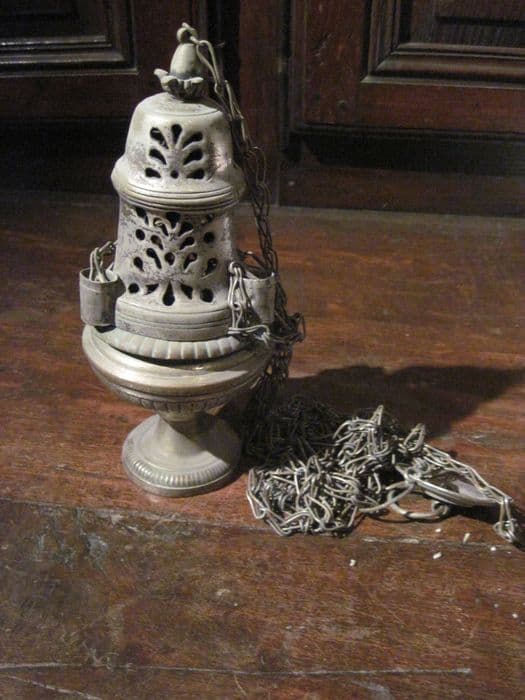 Encensoir à base godronnée et partie supérieure repercée, chaîne.