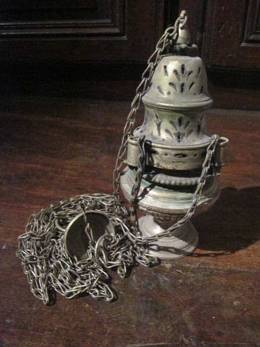 Encensoir à base godronnée et partie supérieure repercée, chaîne.