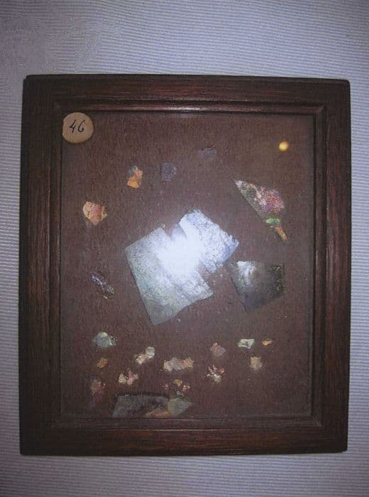Dans la sacristie de la cathédrale, rez-de-chaussée, 2e salle, placards n° 9-10 bas. Petite vitrine-cadre contenant des débris de verre antique.