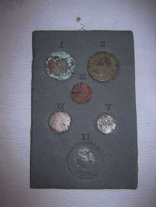 POP | Plateforme ouverte du patrimoinepetite plaque cartonnées présentant six pièces de monnaie