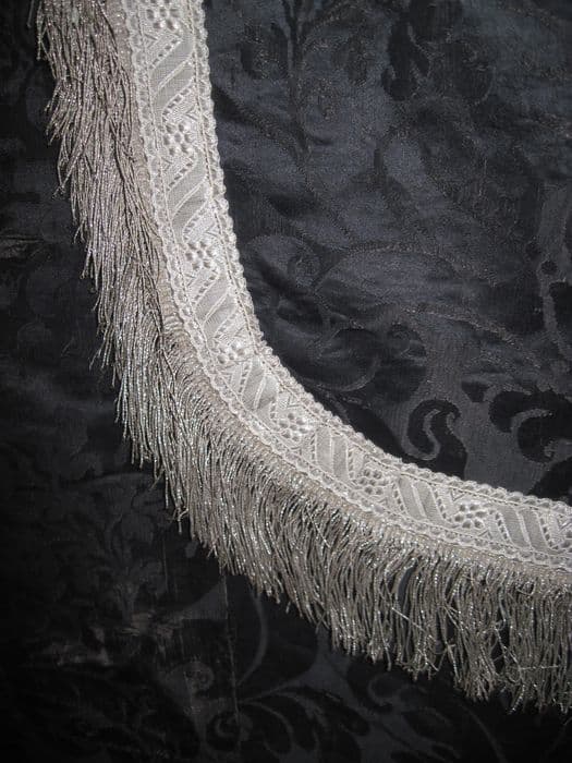Damas de soie noir en partie réemployé et reteint, galon système argent.