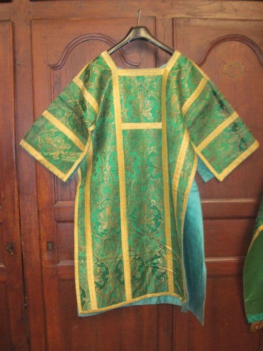 2 dalmatiques fond damas vert.