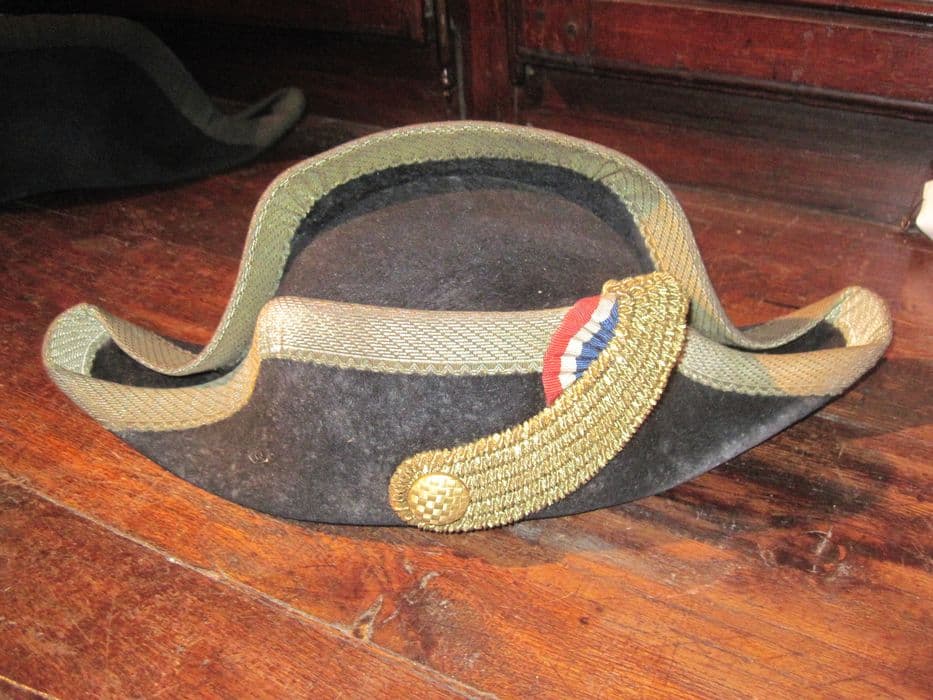 Bicorne de suisse en feutre, galon doré, cocarde tricolore.