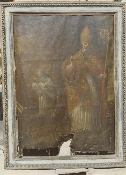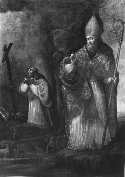 tableau : Saint évêque et un religieux en prières (un)
