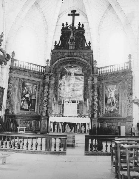 Le chevet du choeur est couvert par un retable, et les deux côtés du choeur sont couverts par un grand panneau en bois représentant en relief des personnages de grandeur naturelle.