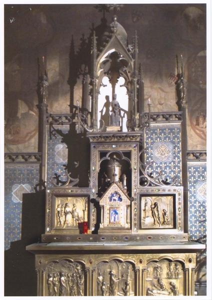Réalisé par l'orfèvre Poussièlque Rusan. Acquis en 1890 par le chapelain. A remplacé le retable en bois doré (avec ses trois toiles) en bois doré installé dans la chapelle Sainte-Anne.