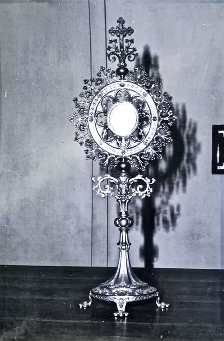 Ostensoir en bronze doré, rosace émaillée, émaux sur la couronne.