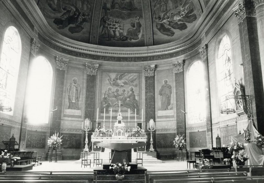 Autel réalisé en 1856 par Bernard Jabouin. Les six flambeaux et la croix dateraient du 18e siècle et les deux chandeliers du 19e siècle.
