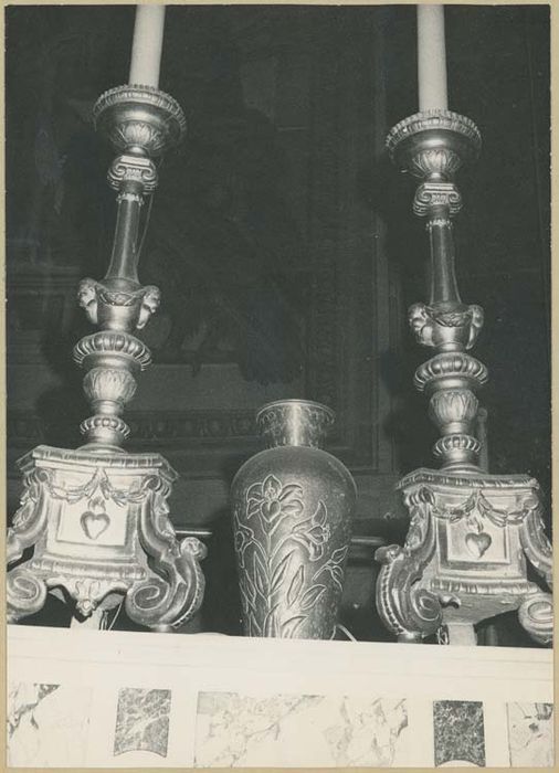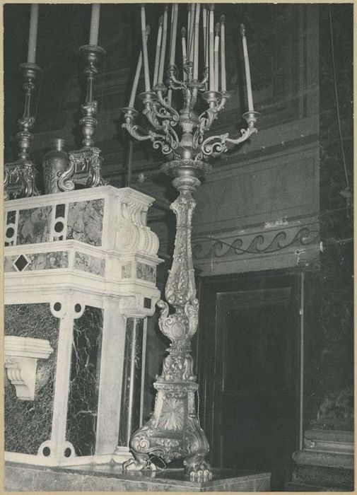 Arrêté : Maître-autel, flambeaux, croix, marbre et cuivre et bronze, 18e siècle et début 19e siècle.