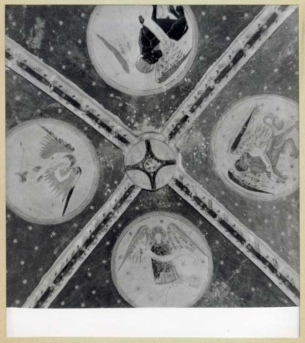 POP | Plateforme ouverte du patrimoinepeintures monumentales : Tétramorphe, Armes de France et Saint évêque