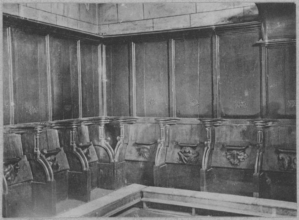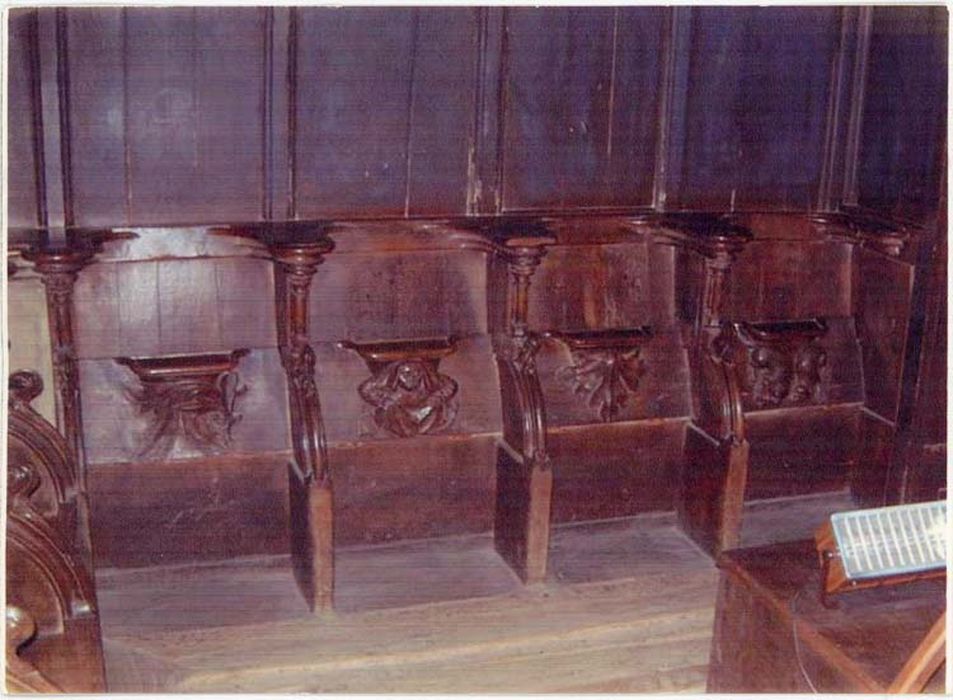 Les miséricordes sont sculptées et représentent divers sujets humoristiques.