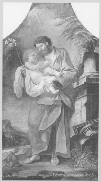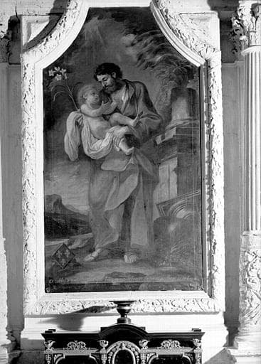 retable, tableau : Saint Joseph portant l'Enfant, devant d'autel : le Mariage de la Vierge et de Joseph