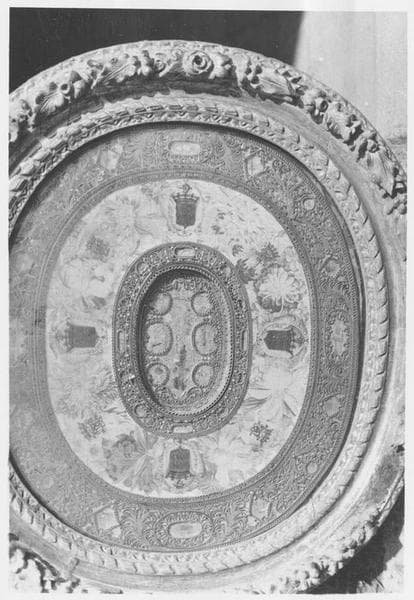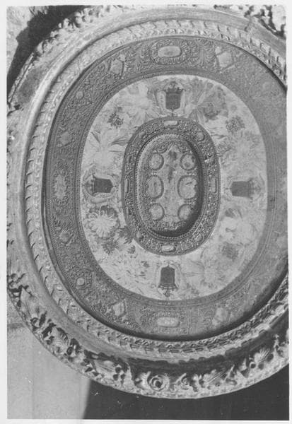 Ce reliquaire est composé de plusieurs ellipses concentriques. L'ellipse intérieure était destinée à recevoir les reliques, mais elles ont actuellement disparu. Le premier cadre entourant ce reliquaire est en papier parchemin roulé, collé sur champ, et doré sur la tranche. Le deuxième encadrement est une peinture sur soie. La dernière ellipse est constituée par le même décor que le premier encadrement en parchemin roulé, collé sur tranche et doré. L'ensemble est placé dans un cadre en bois sculpté.