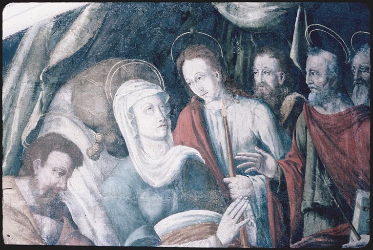 POP | Plateforme ouverte du patrimoinepeintures monumentales : la Cène, La trahison de Judas, la Flagellation, la Crucifixion, la Descente de Croix, la Mise au tombeau, la Résurrection, l'Ascension, la Pentecôte, la Mort et l'Assomption de la Vierge