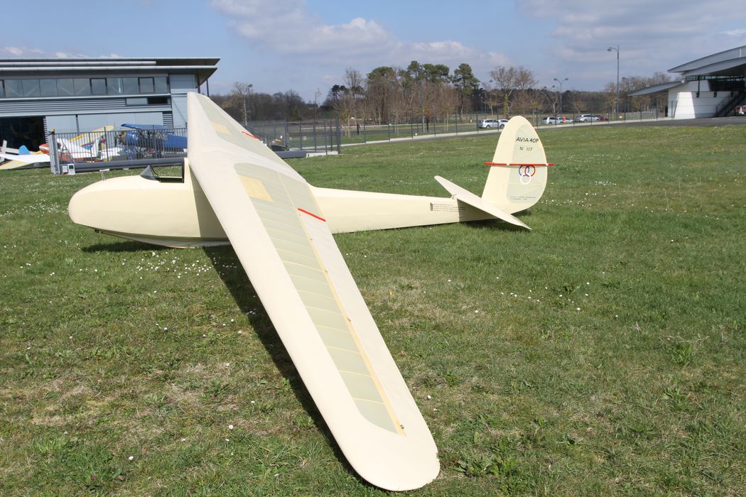 Ce planeur 40 P n° 117 a été construit en 1942 par Roche Aviation à Riom (63) à une époque où l'occupant allemand impose de sévères restrictions à la construction aéronautique française. Considéré comme un planeur à hautes performances, il est utilisé par le Centre de sport aérien de Clermont-Ferrand. Peu de temps après, en 1942, la zone dite libre est envahie. Un an plus tard, les Allemands récupérèrent tous les matériels volants pour être envoyés en Allemagne. Le planeur Avia les intéresse et il est envoyé dans un centre aérien pour la formation de jeunes intégrés aux Hitlerjugend. En juin 1945, le planeur est récupéré, avec trois autres appareils identiques, par les troupes d'occupation britanniques. Les Anglais sont, eux aussi, intéressés par les performances des Avia 40 P et les envoient en Grande-Bretagne. Dans les années 1970, l'Avia 40 P n'est plus considéré que comme planeur d'entraînement aux hautes performances : ses caractéristiques sont déjà dépassées mais, en revanche, il offre l'avantage d'accrocher très bien l'air. En 1974, l'Avia 40 P n° 117, en mauvais état, est arrêté après 526 heure£s de vol et 664 lancers. Après avoir été restauré dans les années 1990, le vol d'homologation, d'une durée de 15 minutes, a lieu le 14 mai 1996. Mike Birch le rapatrie en France où il vole un peu à Saint-Auban-sur-Durance (04), commune où se trouve situé le Centre national du vol à voile. Il gagnera 545 heures de vol supplémentaires. Son certificat de navigabilité classique expirant en 1998, son propriétaire obtient un certificat de navigabilité restreint pour avion de collection (CNRAC). L'Avia participe au Vintage gliders club d'août 2006, où il accomplit deux vols. Après être revenu à Saint-Auban, son nouveau propriétaire, François Ragot, propose d'en faire don au musée régional d'Angers-Marcé, spécialisé dans l'aviation légère. Le planeur y est ramené. Il est l'un des deux Avia 40 P existant ancore au monde, l'autre figurant dans la collection du Musée de l'Air et de l'Espace du Bourget. L'aéroplane est de couleur coquille d'oeuf. En 1945, la France récupère un stock énorme de peinture Novémail P 50, fabriquée pour le compte des Allemands. Cette peinture va être livrée à tous les aéroclubs et tous les avions et planeurs vont se retrouver peints, à la fin des années 1940, dans cette couleur coquille d'oeuf, ce qui permet, d'ailleurs, une meilleure protection de l'intérieur contre les rayons UV. L'appareil n'a subi aucune modification. Les contreplaqués d'okoumé qui le composent sont d'origine. Le poste de pilotage est équipé des ses instruments d'origine : badin, altimètre et variomètre. Les colles utilisées pour son assemblage lors de récentes restaurations sont conformes aux normes de sécurité. Ce planeur est en état de vol. Compte-tenu de sa rareté il ne vole plus et est présenté au public en statique lors des manifestations à caractère aéronautique. Ce planeur a été offert par son précédent propriétaire en 2011 au musée régional de l'Air d'Angers-Marcé. Conçu dans le contexte historique du vol à voile dans l'entre-deux-guerres, le modèle Avia 40 P compta en tout 125 appareils, dont la plupart ont disparu au cours de la Seconde Guerre mondiale. Bien documenté sur le plan technique grâce à la sauvegarde d'un jeu de plans complet, conservé au musée d'Angers-Marcé. A l'instar de ce qui s'est produit en Allemagne après le traité de Versailles, les planeurs en France, après l'armistice du 24 juin 1940, étaient destinés à continuer de former des pilotes dans la zone dite libre. Après l'invasion de cette zone en novembre 1942, les Allemands ont récupéré tous les appareils de l'aviation de Vichy ainsi que les planeurs pour la formation de leurs futurs pilotes. L'Avia 40 P est un aéronef très intéressant car il est lié à la naissance de l'aviation populaire française, à l'éducation de la jeunesse par le vol à voile et à des personnalités comme Jean Malterre, Aimée Jarlot et Eric Nessler.