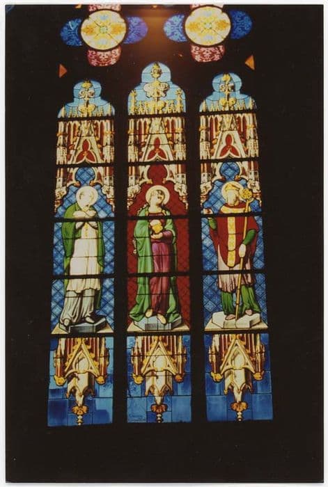 verrière F0 : Saint Louis de Gonzague, sainte Madeleine et saint Augustin
