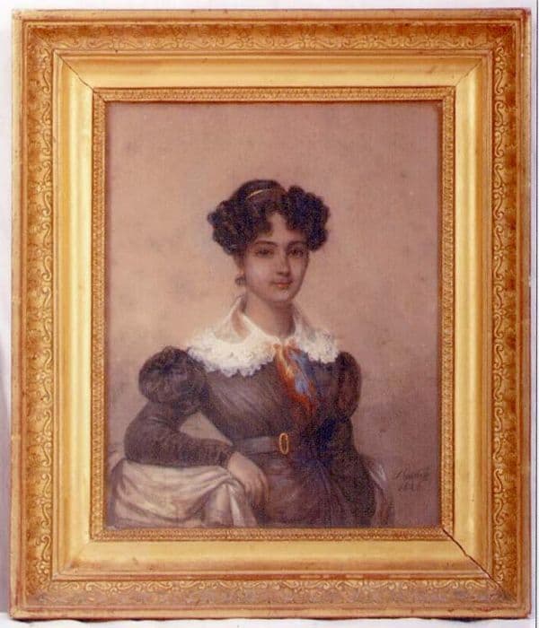 dessin et son cadre : Portrait d'Elisabeth Louise Turpin de Crissé, comtesse de Lostanges