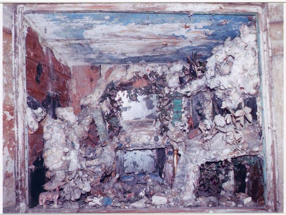 La Vierge tient une grappe de raisin et l'Enfant une pomme.