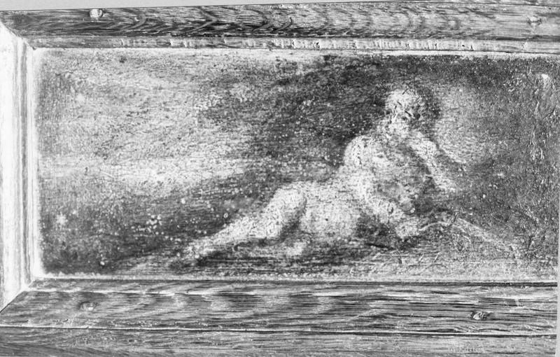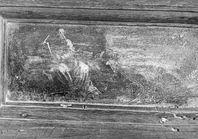 Oeuvre anciennement datée du 18e siècle. Vers 1956, la porte du dosseret, qui était ornée d'un tableau en camaïeu, a disparu. Vers 1960, la peinture en chêne clair, exécutée en 1781 a été décapée.