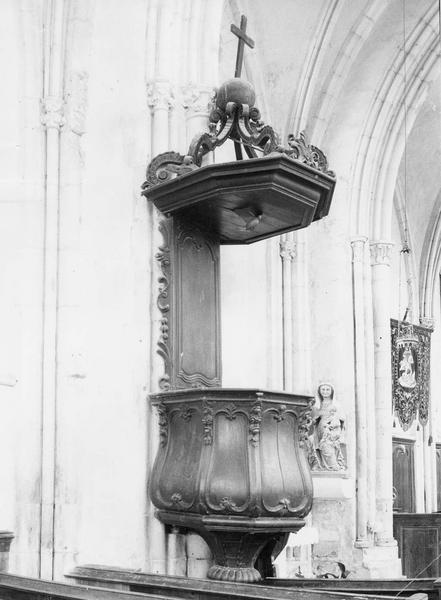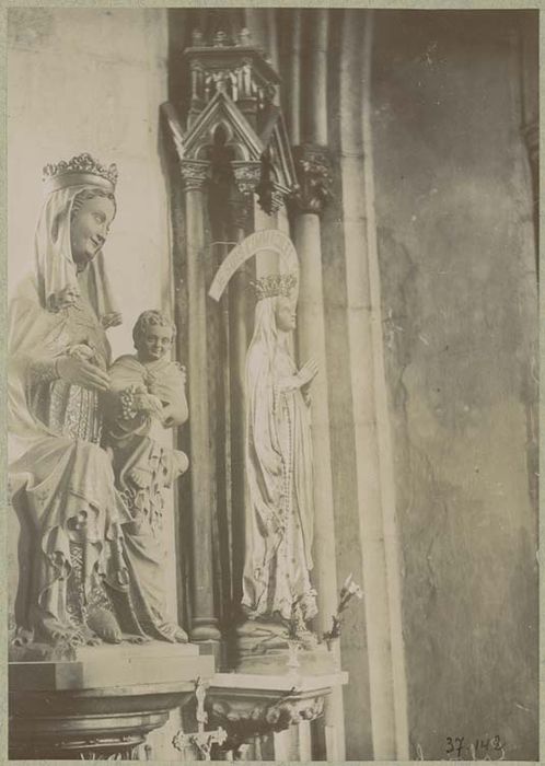 Oeuvre anciennement datée du 14e siècle, exécutée vers 1400. A rattacher à la statue de Montfarville.