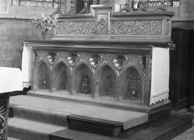 L'autel, son gradin, son tabernacle et son baldaquin, de plan carré, suspendu au-dessus de l'autel, sont en lames d'argent sur âme de bois. La porte est fracturée.