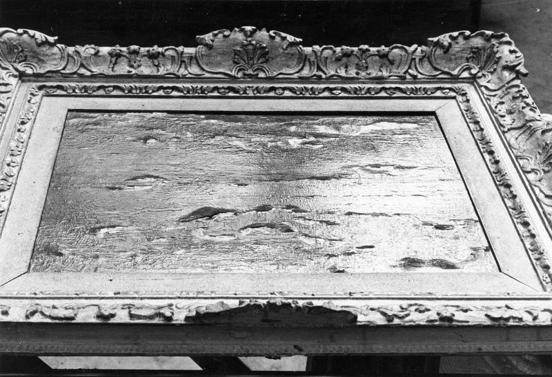 Le cadre, bois sculpté et doré, est du 18e siècle.