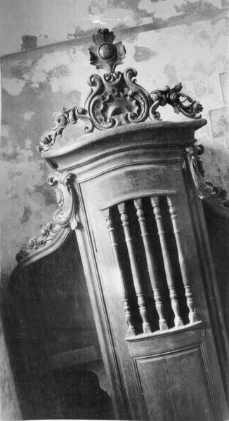 Inscription concernant le donateur : TOUS LES OUVRAGE QUI SONT DANS CETTE EGLISE ONT ETE DONES PAR Mr LE GALLOI CURE DE CE LIEU ET ONT ETE FAIS PAR G. LE GALOIS CURE DE CE LIEU A DONNE TOUS CES OUVRAGES (sur les sièges amovibles des deux confessionnaux).