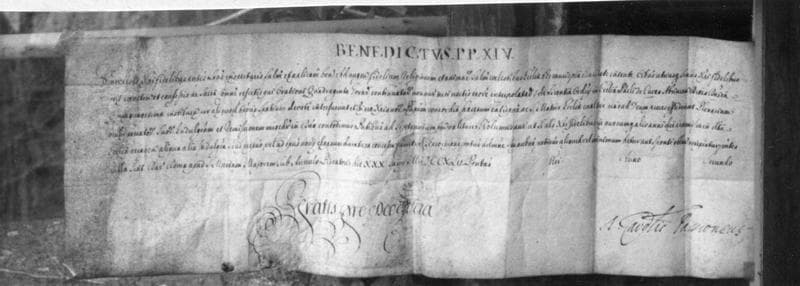 manuscrit dit Bref pontifical de Benoît XIV favorisant d'indulgences les Quarantes-Heures de Saint-Denys de Cuves