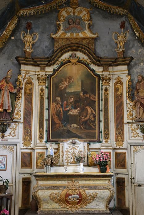 maître-autel, tabernacle, retable et deux statues : Saint Nicolas, Saint Roch, ainsi que deux reliquaires