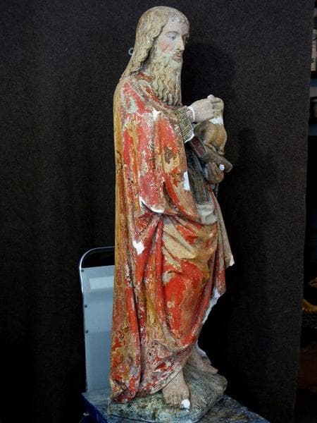 Statue en pierre calcaire polychromée.