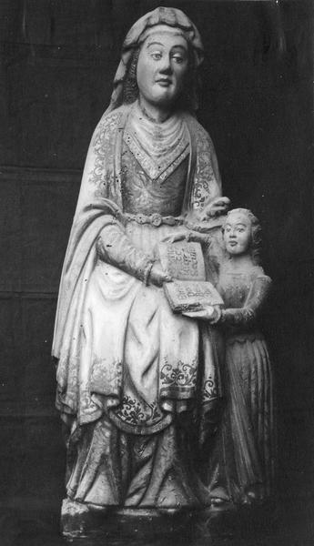 La statue de sainte Anne a été surchargée d'ornements peints, mais la polychromie d'origine existe toujours et est visible par endroits.