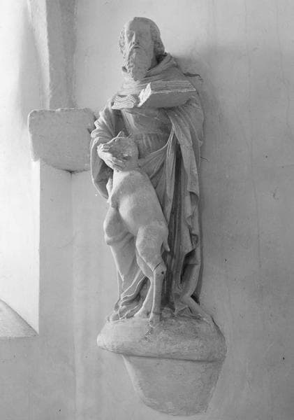 groupe sculpté : Saint Gilles, abbé, et sa biche