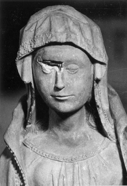 Ce groupe a autrefois été polychromé, mais les couleurs ont disparu. Il se trouvait auparavant dans le jardin du presbytère.