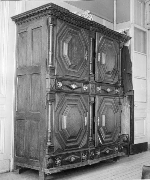 chêne : taillé, mouluré grand cadre, mouluré petit cadre ; fer ; laiton