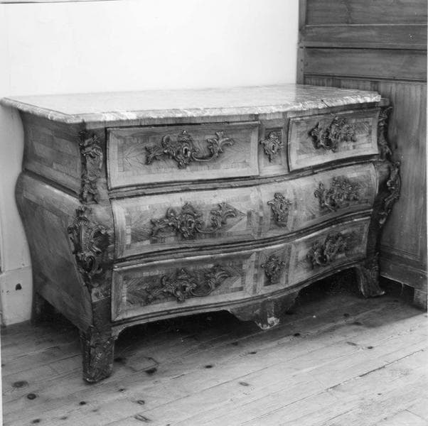 marqueterie ; marbre veiné ; bronze : fondu, ciselé, doré ; fer