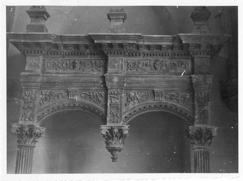 La face du soubassement présente cinq arcades abritant autant de statuettes de petits personnages. Le monument est couronné par un dais que supportent des colonnettes.